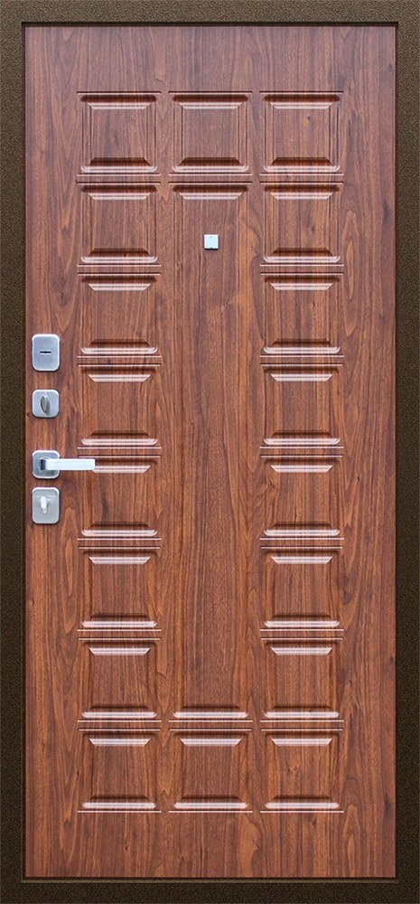 Надежная входная Дверь Спартак Орех темный премиум класса по цене 33 767 руб. Большая толщина стали защитит от проникновения в ваш дом, квартиру или коттедж. Используется очень качественная фурнитура: замки, цилиндры, ручки, защелки. Покрытие и отделка двери изготовлено под внимательным контролем производителя. Дверь имеет долгий срок службы и гарантию.