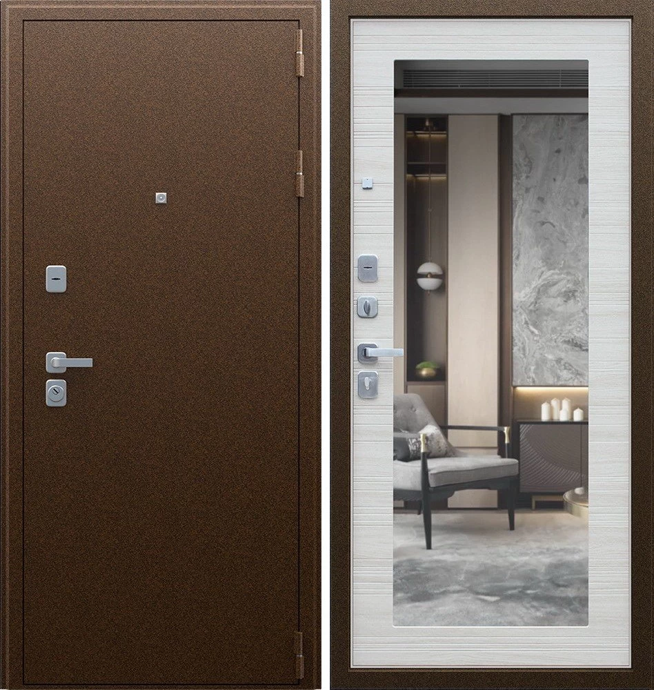 Надежная входная Дверь Спартак с зеркалом Акация Светлая Поперечная премиум класса по цене 36 067 руб. Большая толщина стали защитит от проникновения в ваш дом, квартиру или коттедж. Используется очень качественная фурнитура: замки, цилиндры, ручки, защелки. Покрытие и отделка двери изготовлено под внимательным контролем производителя. Дверь имеет долгий срок службы и гарантию.