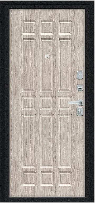 Надежная входная Дверь Браво Мило МФ/BChrome Букле черное/Cappuccino Melinga премиум класса по цене 33 067 руб. Большая толщина стали защитит от проникновения в ваш дом, квартиру или коттедж. Используется очень качественная фурнитура: замки, цилиндры, ручки, защелки. Покрытие и отделка двери изготовлено под внимательным контролем производителя. Дверь имеет долгий срок службы и гарантию.