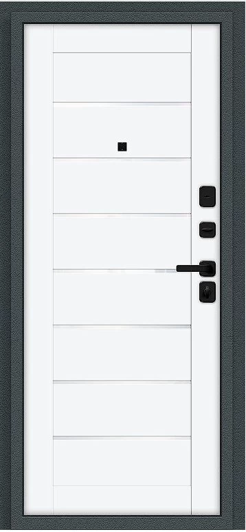 Надежная входная Дверь Браво Техно/SBlack Старк антрацит/White Silk премиум класса по цене 35 717 руб. Большая толщина стали защитит от проникновения в ваш дом, квартиру или коттедж. Используется очень качественная фурнитура: замки, цилиндры, ручки, защелки. Покрытие и отделка двери изготовлено под внимательным контролем производителя. Дверь имеет долгий срок службы и гарантию.