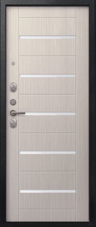 Надежная входная Дверь V-05 Черный муар - Лиственница светлая премиум класса по цене 41 567 руб. Большая толщина стали защитит от проникновения в ваш дом, квартиру или коттедж. Используется очень качественная фурнитура: замки, цилиндры, ручки, защелки. Покрытие и отделка двери изготовлено под внимательным контролем производителя. Дверь имеет долгий срок службы и гарантию.